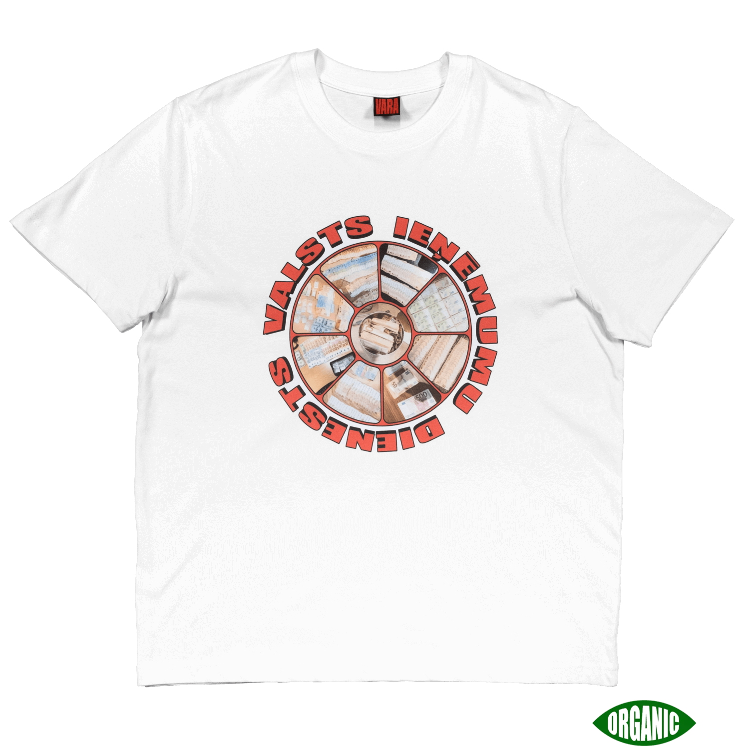This is the tax shirt, meant to encourage everybody to pay their taxes. 100% of the proceeds from this shirt will be paid to the State Revenue Service of Latvia.